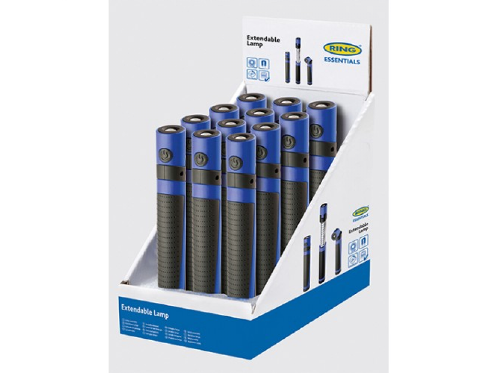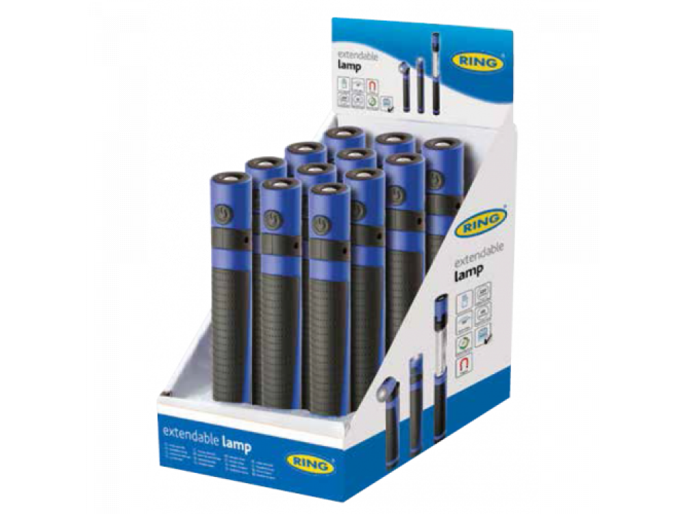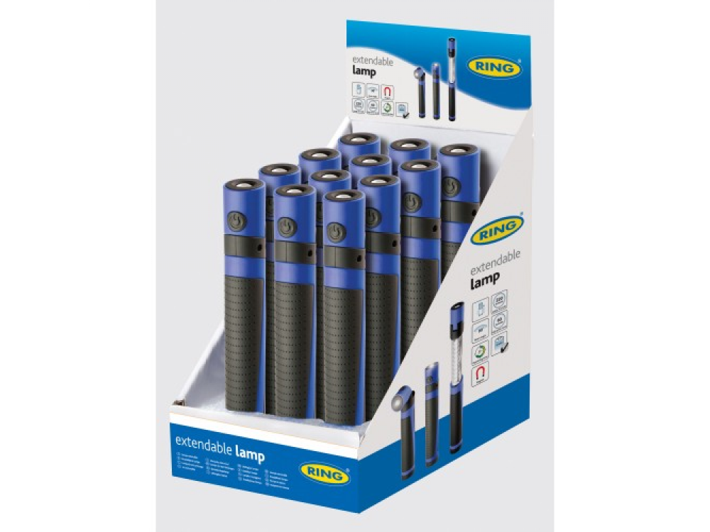 Телескопическая светодиодная инспекционная лампа Ring RIL80. Излучает яркий белый свет 60 люмен при использовании базового светодиода, при ее полной работе лампа имеет светоотдачу 220 люмен. Лампа с двумя функциями идеально подходит для дома и использования в машине. Базовый светодиод может быть повернут на угол до 90 °, магнитное основание позволяет использовать лампу без помощи рук, что делает его идеальным для просмотра под капотом автомобиля или под шасси автомобиля. Батареи в комплекте.
