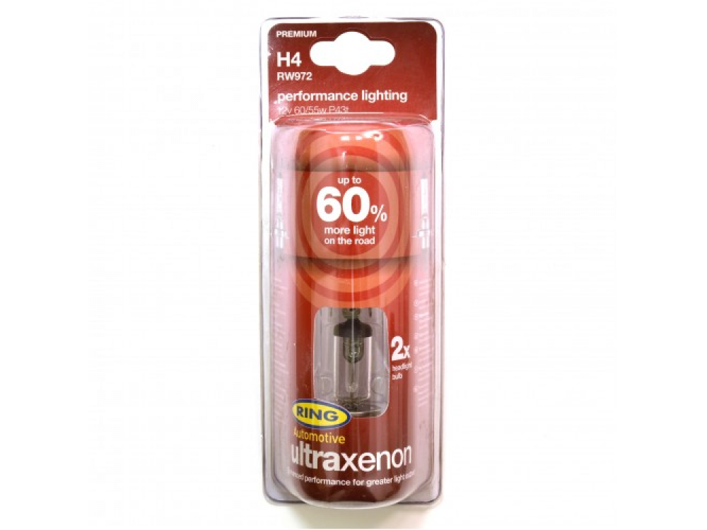 Автолампа ULTRA XENON +60% в пластиковой упаковке (по 2 шт): 12 вольт, мощность 60/55W, цоколь H4 (P43t)